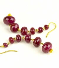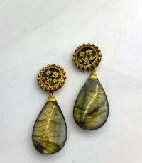 Oorbellen in 18k goud met groene barnsteen druppels met oranje carneool stekers