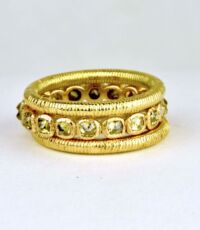 Vijf verschillende ringen in 18k geel en witgoud, leuk om er veel om te hebben